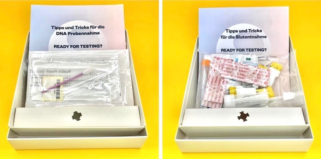 Jetzt fragst du dich vielleicht, wie diese Tests ablaufen. Beide Tests sind einfach und komfortabel, ohne dass du dafür in eine Arztpraxis musst. Der Selbsttest mit einem Test-Kit ermöglicht es dir, diese bequem zu Hause durchzuführen. Du entnimmst die notwendigen Proben, sendest sie kostenlos an unsere Labore, und erhältst nach einer kurzen Wartezeit deine sehr klaren und detaillierten Ergebnisse. Die Analysen werden im akkreditierten Labor durchgeführt, sodass du auf präzise und verlässliche Ergebnisse vertrauen kannst. Alle Daten werden selbstverständlich pseudonymisiert, nach höchsten IT-Sicherheitsstandards und der EU DSGVO verarbeitet! Sobald die Ergebnisse im Labor fertig sind, erhältst du diese in einer kostenlosen, tollen App, in der du bei der Durchführung der Testungen diese schon via QR-Code verknüpft hast. Sogar inklusive Rezeptvorschläge für dein persönliche Ernährung!